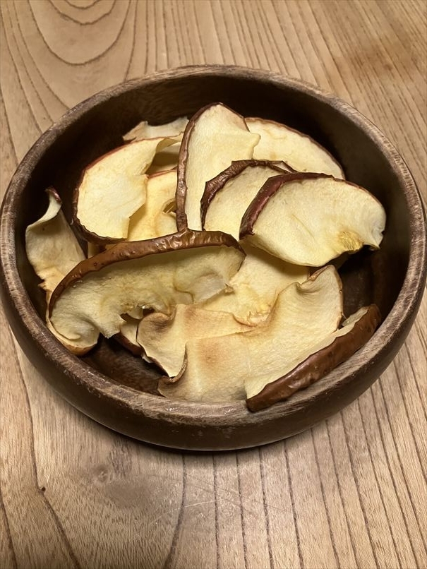 ボケたリンゴがあったので、薪ストーブでドライリンゴ作ったよ。